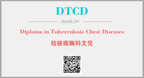 上述内容是“Diploma in Tuberculosis Chest Diseases”作为“DTCD”的缩写,解释为“结核病胸科文凭”时的信息,以及英文缩略词DTCD所代表的英文单词,其对应的中文拼音、详细解释以及在英文中的流行度和相关分类、应用领域及应用示例等。