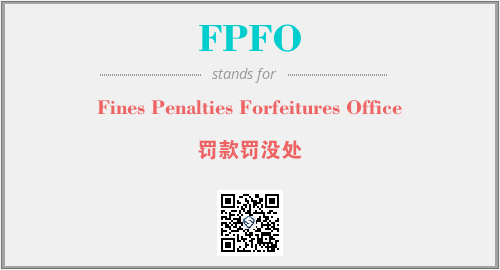 英文缩略词“FPFO”经常作为“Fines Penalties Forfeitures Office”的英文缩写来使用,中文表示:“罚款罚没处”。本文将详细介绍英文缩写词FPFO所代表英文单词,其对应的中文拼音、详细解释以及在英语中的流行度。此外,还有关于缩略词FPFO的分类、应用领域及相关应用示例等。