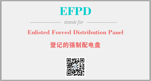 英文缩略词“EFPD”经常作为“Enlisted Forced Distribution Panel”的英文缩写来使用,中文表示:“登记的强制配电盘”。本文将详细介绍英文缩写词EFPD所代表英文单词,其对应的中文拼音、详细解释以及在英语中的流行度。此外,还有关于缩略词EFPD的分类、应用领域及相关应用示例等。