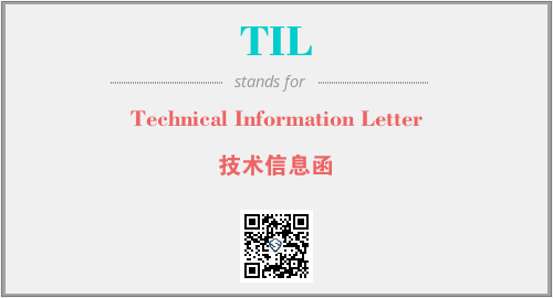 英文缩略词“TIL”经常作为“Technical Information Letter”的英文缩写来使用,中文表示:“技术信息函”。本文将详细介绍英文缩写词TIL所代表英文单词,其对应的中文拼音、详细解释以及在英语中的流行度。此外,还有关于缩略词TIL的分类、应用领域及相关应用示例等。