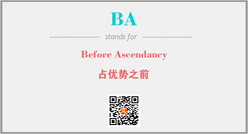 上述内容是“Before Ascendancy”作为“BA”的缩写,解释为“占优势之前”时的信息,以及英文缩略词BA所代表的英文单词,其对应的中文拼音、详细解释以及在英文中的流行度和相关分类、应用领域及应用示例等。