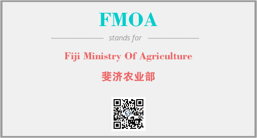 上述内容是“Fiji Ministry Of Agriculture”作为“FMOA”的缩写,解释为“斐济农业部”时的信息,以及英文缩略词FMOA所代表的英文单词,其对应的中文拼音、详细解释以及在英文中的流行度和相关分类、应用领域及应用示例等。