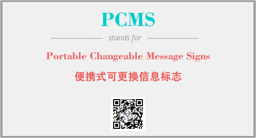 英文缩略词“PCMS”经常作为“Portable Changeable Message Signs”的英文缩写来使用,中文表示:“便携式可更换信息标志”。本文将详细介绍英文缩写词PCMS所代表英文单词,其对应的中文拼音、详细解释以及在英语中的流行度。此外,还有关于缩略词PCMS的分类、应用领域及相关应用示例等。