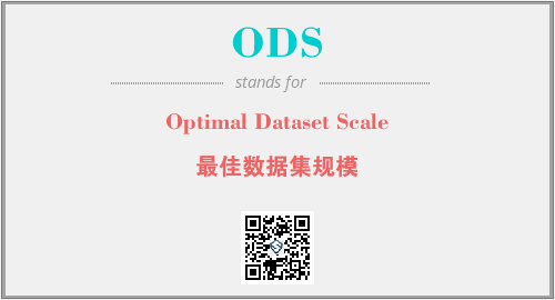 英文缩略词“ODS”经常作为“Optimal Dataset Scale”的英文缩写来使用,中文表示:“最佳数据集规模”。本文将详细介绍英文缩写词ODS所代表英文单词,其对应的中文拼音、详细解释以及在英语中的流行度。此外,还有关于缩略词ODS的分类、应用领域及相关应用示例等。