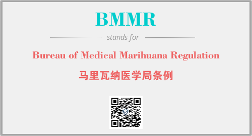 上述内容是“Bureau of Medical Marihuana Regulation”作为“BMMR”的缩写,解释为“马里瓦纳医学局条例”时的信息,以及英文缩略词BMMR所代表的英文单词,其对应的中文拼音、详细解释以及在英文中的流行度和相关分类、应用领域及应用示例等。