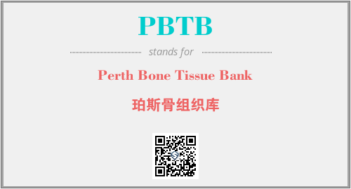 英文缩略词“PBTB”经常作为“Perth Bone Tissue Bank”的英文缩写来使用,中文表示:“珀斯骨组织库”。本文将详细介绍英文缩写词PBTB所代表英文单词,其对应的中文拼音、详细解释以及在英语中的流行度。此外,还有关于缩略词PBTB的分类、应用领域及相关应用示例等。