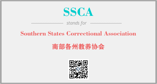 英文缩略词“SSCA”经常作为“Southern States Correctional Association”的英文缩写来使用,中文表示:“南部各州教养协会”。本文将详细介绍英文缩写词SSCA所代表英文单词,其对应的中文拼音、详细解释以及在英语中的流行度。此外,还有关于缩略词SSCA的分类、应用领域及相关应用示例等。