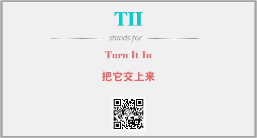 英文缩略词“TII”经常作为“Turn It In”的英文缩写来使用,中文表示:“把它交上来”。本文将详细介绍英文缩写词TII所代表英文单词,其对应的中文拼音、详细解释以及在英语中的流行度。此外,还有关于缩略词TII的分类、应用领域及相关应用示例等。
