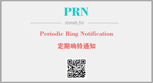 英文缩略词“PRN”经常作为“Periodic Ring Notification”的英文缩写来使用,中文表示:“定期响铃通知”。本文将详细介绍英文缩写词PRN所代表英文单词,其对应的中文拼音、详细解释以及在英语中的流行度。此外,还有关于缩略词PRN的分类、应用领域及相关应用示例等。