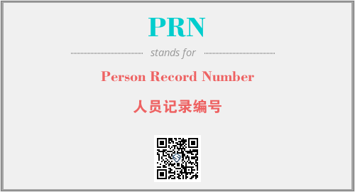 上述内容是“Person Record Number”作为“PRN”的缩写,解释为“人员记录编号”时的信息,以及英文缩略词PRN所代表的英文单词,其对应的中文拼音、详细解释以及在英文中的流行度和相关分类、应用领域及应用示例等。