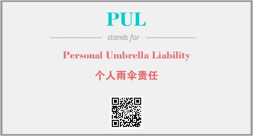 上述内容是“Personal Umbrella Liability”作为“PUL”的缩写,解释为“个人雨伞责任”时的信息,以及英文缩略词PUL所代表的英文单词,其对应的中文拼音、详细解释以及在英文中的流行度和相关分类、应用领域及应用示例等。