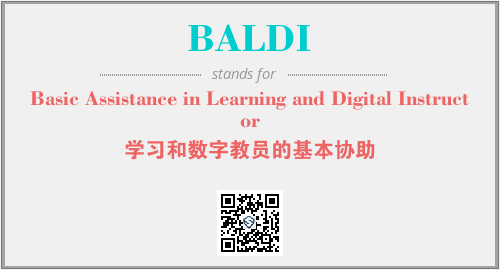 上述内容是“Basic Assistance in Learning and Digital Instructor”作为“BALDI”的缩写,解释为“学习和数字教员的基本协助”时的信息,以及英文缩略词BALDI所代表的英文单词,其对应的中文拼音、详细解释以及在英文中的流行度和相关分类、应用领域及应用示例等。