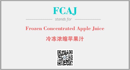 上述内容是“Frozen Concentrated Apple Juice”作为“FCAJ”的缩写,解释为“冷冻浓缩苹果汁”时的信息,以及英文缩略词FCAJ所代表的英文单词,其对应的中文拼音、详细解释以及在英文中的流行度和相关分类、应用领域及应用示例等。