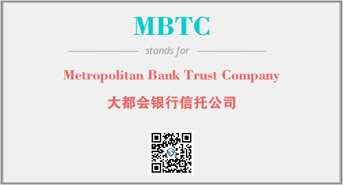 英文缩略词“MBTC”经常作为“Metropolitan Bank Trust Company”的英文缩写来使用,中文表示:“大都会银行信托公司”。本文将详细介绍英文缩写词MBTC所代表英文单词,其对应的中文拼音、详细解释以及在英语中的流行度。此外,还有关于缩略词MBTC的分类、应用领域及相关应用示例等。