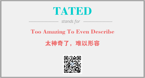以上为Too Amazing To Even Describe英文缩略词TATED的中文解释,以及该英文缩写在英语的流行度、分类和应用领域方面的信息。