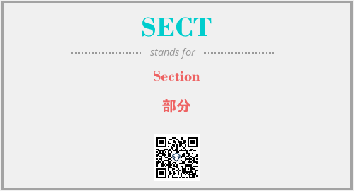 英文缩略词“SECT”经常作为“Section”的英文缩写来使用,中文表示:“部分”。本文将详细介绍英文缩写词SECT所代表英文单词,其对应的中文拼音、详细解释以及在英语中的流行度。此外,还有关于缩略词SECT的分类、应用领域及相关应用示例等。