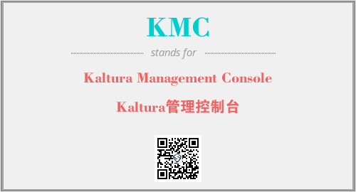 英文缩略词“KMC”经常作为“Kaltura Management Console”的英文缩写来使用,中文表示:“Kaltura管理控制台”。本文将详细介绍英文缩写词KMC所代表英文单词,其对应的中文拼音、详细解释以及在英语中的流行度。此外,还有关于缩略词KMC的分类、应用领域及相关应用示例等。