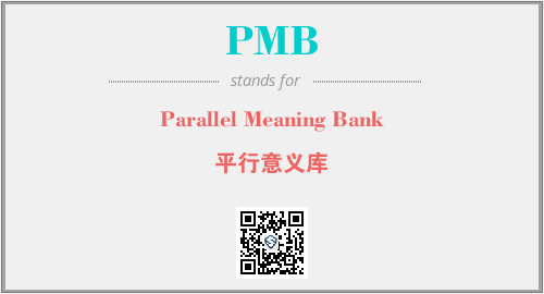 英文缩略词“PMB”经常作为“Parallel Meaning Bank”的英文缩写来使用,中文表示:“平行意义库”。本文将详细介绍英文缩写词PMB所代表英文单词,其对应的中文拼音、详细解释以及在英语中的流行度。此外,还有关于缩略词PMB的分类、应用领域及相关应用示例等。