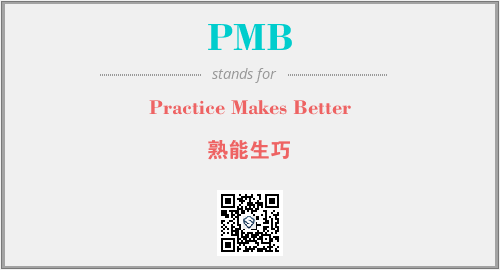 以上为Practice Makes Better英文缩略词PMB的中文解释,以及该英文缩写在英语的流行度、分类和应用领域方面的信息。