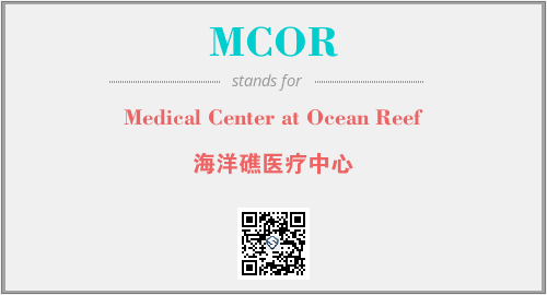上述内容是“Medical Center at Ocean Reef”作为“MCOR”的缩写,解释为“海洋礁医疗中心”时的信息,以及英文缩略词MCOR所代表的英文单词,其对应的中文拼音、详细解释以及在英文中的流行度和相关分类、应用领域及应用示例等。