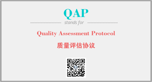 上述内容是“Quality Assessment Protocol”作为“QAP”的缩写,解释为“质量评估协议”时的信息,以及英文缩略词QAP所代表的英文单词,其对应的中文拼音、详细解释以及在英文中的流行度和相关分类、应用领域及应用示例等。