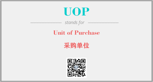 英文缩略词“UOP”经常作为“Unit of Purchase”的英文缩写来使用,中文表示:“采购单位”。本文将详细介绍英文缩写词UOP所代表英文单词,其对应的中文拼音、详细解释以及在英语中的流行度。此外,还有关于缩略词UOP的分类、应用领域及相关应用示例等。