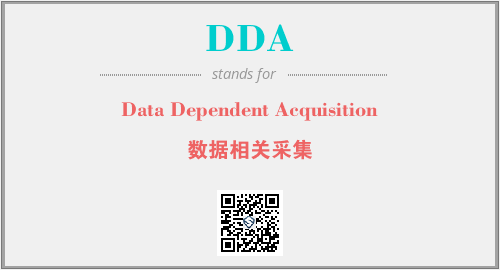 英文缩略词“DDA”经常作为“Data Dependent Acquisition”的英文缩写来使用,中文表示:“数据相关采集”。本文将详细介绍英文缩写词DDA所代表英文单词,其对应的中文拼音、详细解释以及在英语中的流行度。此外,还有关于缩略词DDA的分类、应用领域及相关应用示例等。