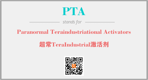 英文缩略词“PTA”经常作为“Paranormal Teraindustriational Activators”的英文缩写来使用,中文表示:“超常TeraIndustrial激活剂”。本文将详细介绍英文缩写词PTA所代表英文单词,其对应的中文拼音、详细解释以及在英语中的流行度。此外,还有关于缩略词PTA的分类、应用领域及相关应用示例等。