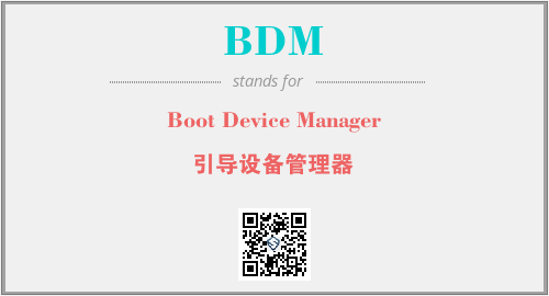 英文缩略词“BDM”经常作为“Boot Device Manager”的英文缩写来使用,中文表示:“引导设备管理器”。本文将详细介绍英文缩写词BDM所代表英文单词,其对应的中文拼音、详细解释以及在英语中的流行度。此外,还有关于缩略词BDM的分类、应用领域及相关应用示例等。