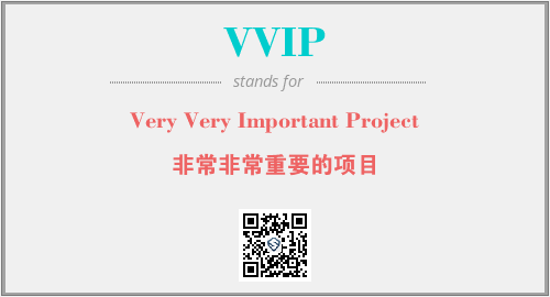 上述内容是“Very Very Important Project”作为“VVIP”的缩写,解释为“非常非常重要的项目”时的信息,以及英文缩略词VVIP所代表的英文单词,其对应的中文拼音、详细解释以及在英文中的流行度和相关分类、应用领域及应用示例等。
