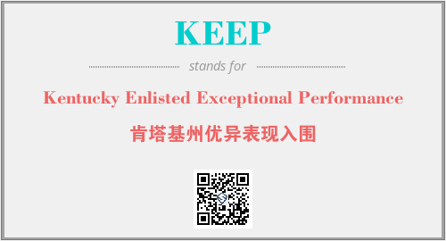 上述内容是“Kentucky Enlisted Exceptional Performance”作为“KEEP”的缩写,解释为“肯塔基州优异表现入围”时的信息,以及英文缩略词KEEP所代表的英文单词,其对应的中文拼音、详细解释以及在英文中的流行度和相关分类、应用领域及应用示例等。
