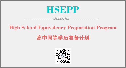 英文缩略词“HSEPP”经常作为“High School Equivalency Preparation Program”的英文缩写来使用,中文表示:“高中同等学历准备计划”。本文将详细介绍英文缩写词HSEPP所代表英文单词,其对应的中文拼音、详细解释以及在英语中的流行度。此外,还有关于缩略词HSEPP的分类、应用领域及相关应用示例等。