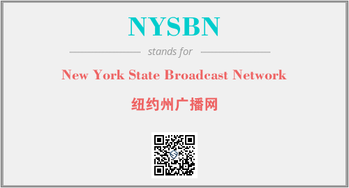 上述内容是“New York State Broadcast Network”作为“NYSBN”的缩写,解释为“纽约州广播网”时的信息,以及英文缩略词NYSBN所代表的英文单词,其对应的中文拼音、详细解释以及在英文中的流行度和相关分类、应用领域及应用示例等。