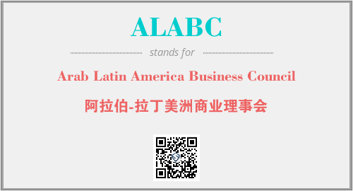 上述内容是“Arab Latin America Business Council”作为“ALABC”的缩写,解释为“阿拉伯-拉丁美洲商业理事会”时的信息,以及英文缩略词ALABC所代表的英文单词,其对应的中文拼音、详细解释以及在英文中的流行度和相关分类、应用领域及应用示例等。