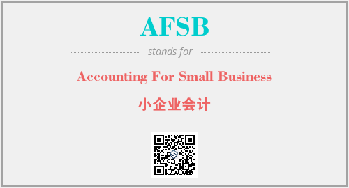 英文缩略词“AFSB”经常作为“Accounting For Small Business”的英文缩写来使用,中文表示:“小企业会计”。本文将详细介绍英文缩写词AFSB所代表英文单词,其对应的中文拼音、详细解释以及在英语中的流行度。此外,还有关于缩略词AFSB的分类、应用领域及相关应用示例等。