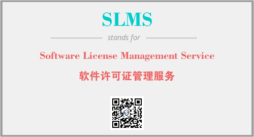 英文缩略词“SLMS”经常作为“Software License Management Service”的英文缩写来使用,中文表示:“软件许可证管理服务”。本文将详细介绍英文缩写词SLMS所代表英文单词,其对应的中文拼音、详细解释以及在英语中的流行度。此外,还有关于缩略词SLMS的分类、应用领域及相关应用示例等。