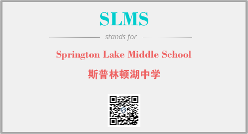 英文缩略词“SLMS”经常作为“Springton Lake Middle School”的英文缩写来使用,中文表示:“斯普林顿湖中学”。本文将详细介绍英文缩写词SLMS所代表英文单词,其对应的中文拼音、详细解释以及在英语中的流行度。此外,还有关于缩略词SLMS的分类、应用领域及相关应用示例等。