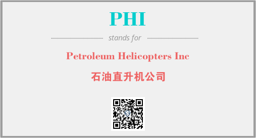 上述内容是“Petroleum Helicopters Inc”作为“PHI”的缩写,解释为“石油直升机公司”时的信息,以及英文缩略词PHI所代表的英文单词,其对应的中文拼音、详细解释以及在英文中的流行度和相关分类、应用领域及应用示例等。