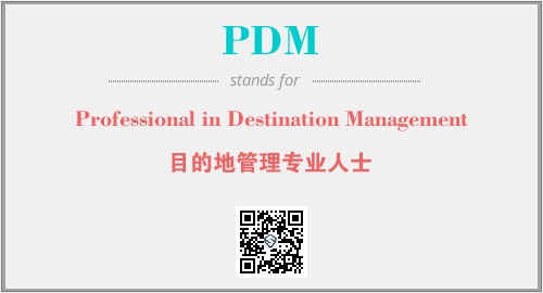 英文缩略词“PDM”经常作为“Professional in Destination Management”的英文缩写来使用,中文表示:“目的地管理专业人士”。本文将详细介绍英文缩写词PDM所代表英文单词,其对应的中文拼音、详细解释以及在英语中的流行度。此外,还有关于缩略词PDM的分类、应用领域及相关应用示例等。