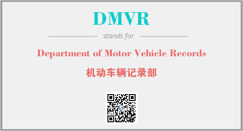 上述内容是“Department of Motor Vehicle Records”作为“DMVR”的缩写,解释为“机动车辆记录部”时的信息,以及英文缩略词DMVR所代表的英文单词,其对应的中文拼音、详细解释以及在英文中的流行度和相关分类、应用领域及应用示例等。