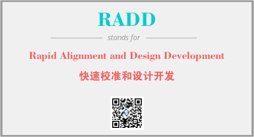 上述内容是“Rapid Alignment and Design Development”作为“RADD”的缩写,解释为“快速校准和设计开发”时的信息,以及英文缩略词RADD所代表的英文单词,其对应的中文拼音、详细解释以及在英文中的流行度和相关分类、应用领域及应用示例等。
