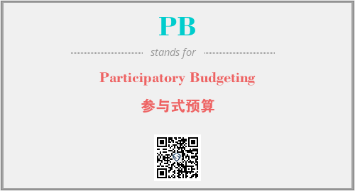 英文缩略词“PB”经常作为“Participatory Budgeting”的英文缩写来使用,中文表示:“参与式预算”。本文将详细介绍英文缩写词PB所代表英文单词,其对应的中文拼音、详细解释以及在英语中的流行度。此外,还有关于缩略词PB的分类、应用领域及相关应用示例等。