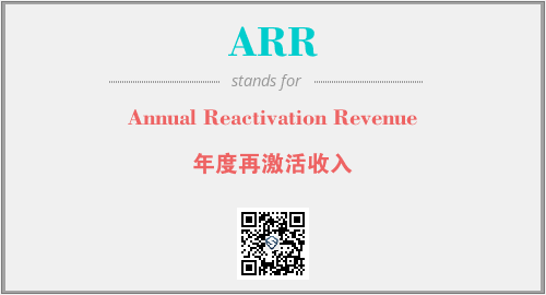 上述内容是“Annual Reactivation Revenue”作为“ARR”的缩写,解释为“年度再激活收入”时的信息,以及英文缩略词ARR所代表的英文单词,其对应的中文拼音、详细解释以及在英文中的流行度和相关分类、应用领域及应用示例等。