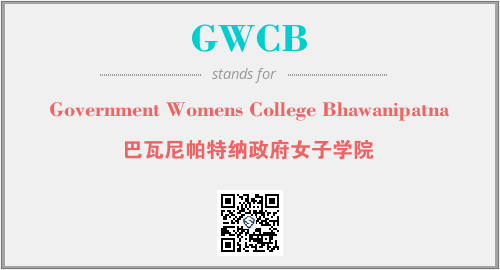 上述内容是“Government Womens College Bhawanipatna”作为“GWCB”的缩写,解释为“巴瓦尼帕特纳政府女子学院”时的信息,以及英文缩略词GWCB所代表的英文单词,其对应的中文拼音、详细解释以及在英文中的流行度和相关分类、应用领域及应用示例等。