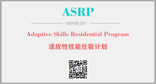 上述内容是“Adaptive Skills Residential Program”作为“ASRP”的缩写,解释为“适应性技能住宿计划”时的信息,以及英文缩略词ASRP所代表的英文单词,其对应的中文拼音、详细解释以及在英文中的流行度和相关分类、应用领域及应用示例等。