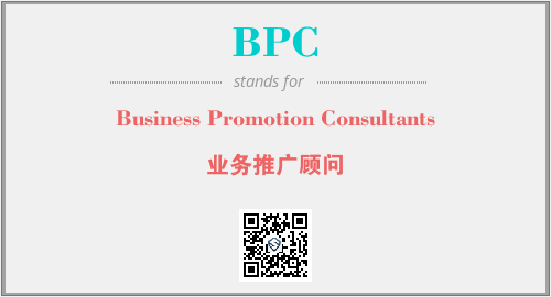 英文缩略词“BPC”经常作为“Business Promotion Consultants”的英文缩写来使用,中文表示:“业务推广顾问”。本文将详细介绍英文缩写词BPC所代表英文单词,其对应的中文拼音、详细解释以及在英语中的流行度。此外,还有关于缩略词BPC的分类、应用领域及相关应用示例等。