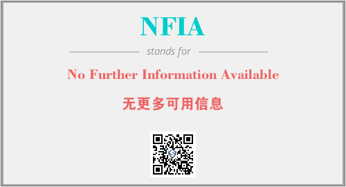 英文缩略词“NFIA”经常作为“No Further Information Available”的英文缩写来使用,中文表示:“无更多可用信息”。本文将详细介绍英文缩写词NFIA所代表英文单词,其对应的中文拼音、详细解释以及在英语中的流行度。此外,还有关于缩略词NFIA的分类、应用领域及相关应用示例等。
