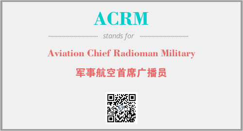 上述内容是“Aviation Chief Radioman Military”作为“ACRM”的缩写,解释为“军事航空首席广播员”时的信息,以及英文缩略词ACRM所代表的英文单词,其对应的中文拼音、详细解释以及在英文中的流行度和相关分类、应用领域及应用示例等。