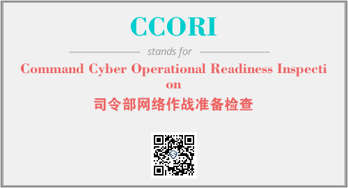 英文缩略词“CCORI”经常作为“Command Cyber Operational Readiness Inspection”的英文缩写来使用,中文表示:“司令部网络作战准备检查”。本文将详细介绍英文缩写词CCORI所代表英文单词,其对应的中文拼音、详细解释以及在英语中的流行度。此外,还有关于缩略词CCORI的分类、应用领域及相关应用示例等。