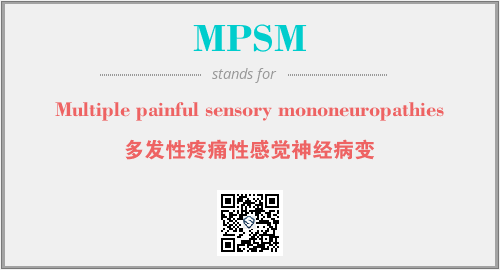 上述内容是“Multiple painful sensory mononeuropathies”作为“MPSM”的缩写,解释为“多发性疼痛性感觉神经病变”时的信息,以及英文缩略词MPSM所代表的英文单词,其对应的中文拼音、详细解释以及在英文中的流行度和相关分类、应用领域及应用示例等。